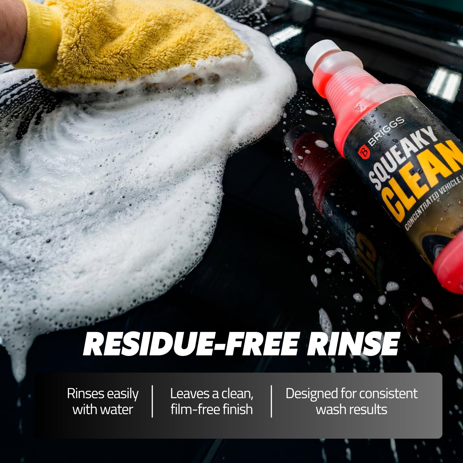 Briggs Squeaky Clean Hyper Concentrated Vehicle Wash – High Suds Car Wash Soap with Easy Rinse, Spot-Free Shine, Safe on Paint, Plastic & Metal – 34 oz