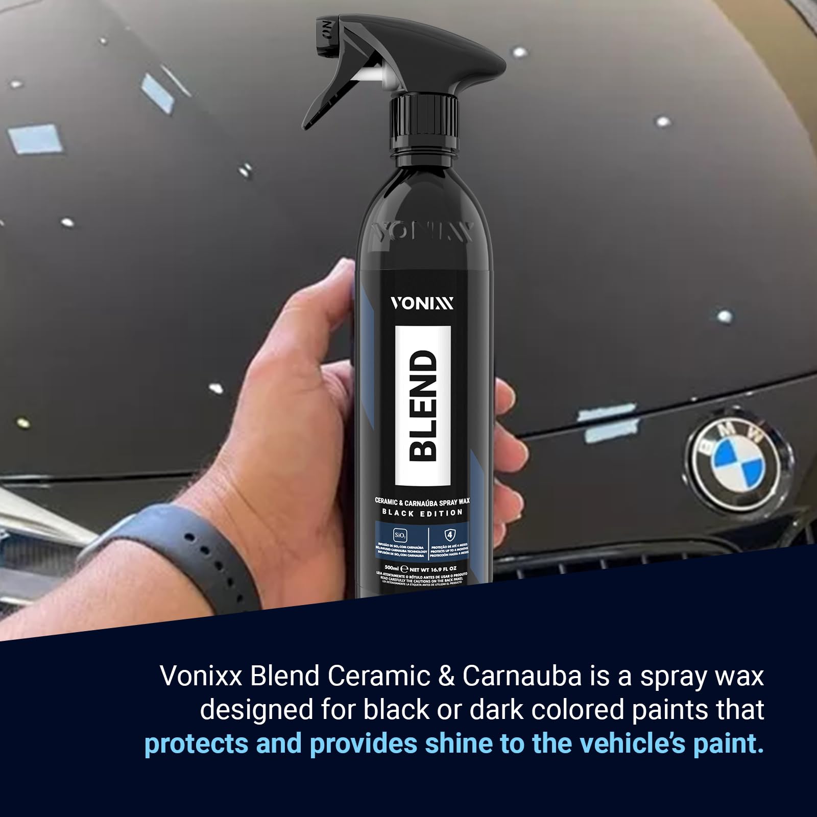 Vonixx Blend Ceramic & Carnauba Spray Wax - Black Edition | Deep Shine for Dark Paints | Superior Automotive Care Solution | Conceals Swirls and Scratches | Car wax Essential | 16.9 fl oz (500 ml)