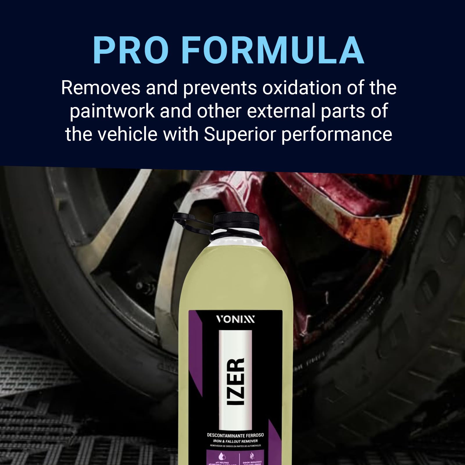 Vonixx Izer Iron Remover| pH-Neutral, Non-Acidic Formula | Easy Application | Reduced Odor Formula | Keep Your Vehicle Looking Like New | Car Detailing Supplies | 101.4 fl oz (3L)